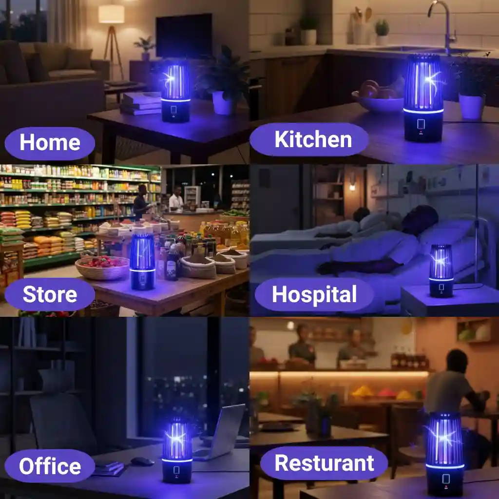 An ultraportable & powerful NEW device that traps & kill mosquitoes, flies, and bugs in your house, office or outdoor -without spraying & inhaling harmful chemicals.